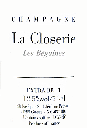 ●ジェローム・プレヴォー・シャンパーニュ・エクストラ・ブリュット・ラ・クロズリー・レ・ベギーヌ NV(2020) セット .